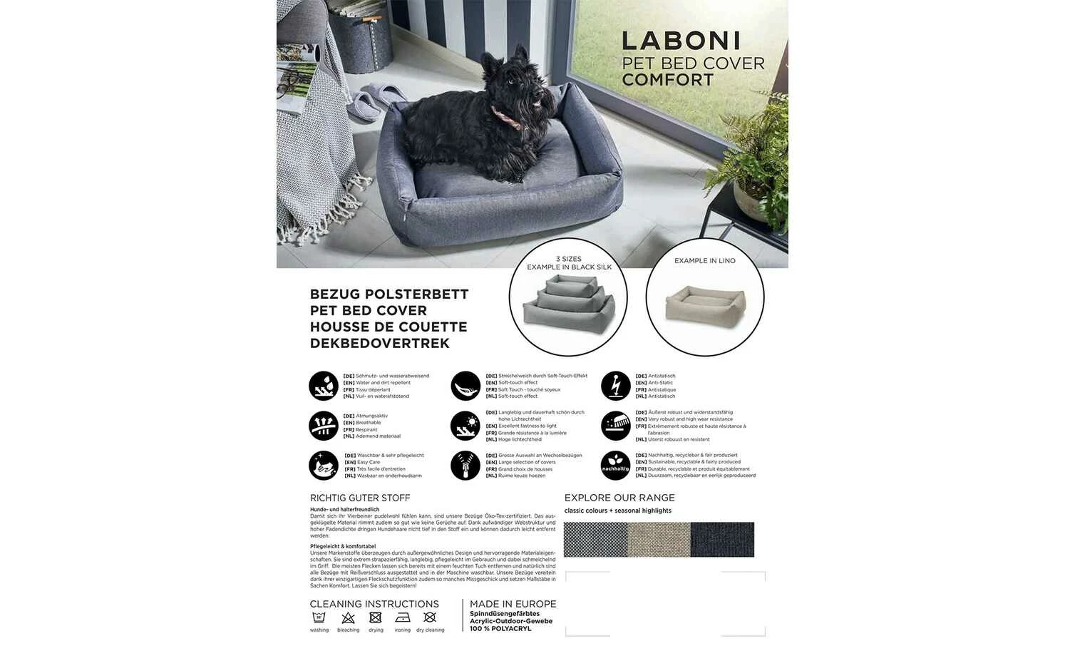 - Waschbarkeit: Bezug abnehmbar und normal waschbar bis 30°
